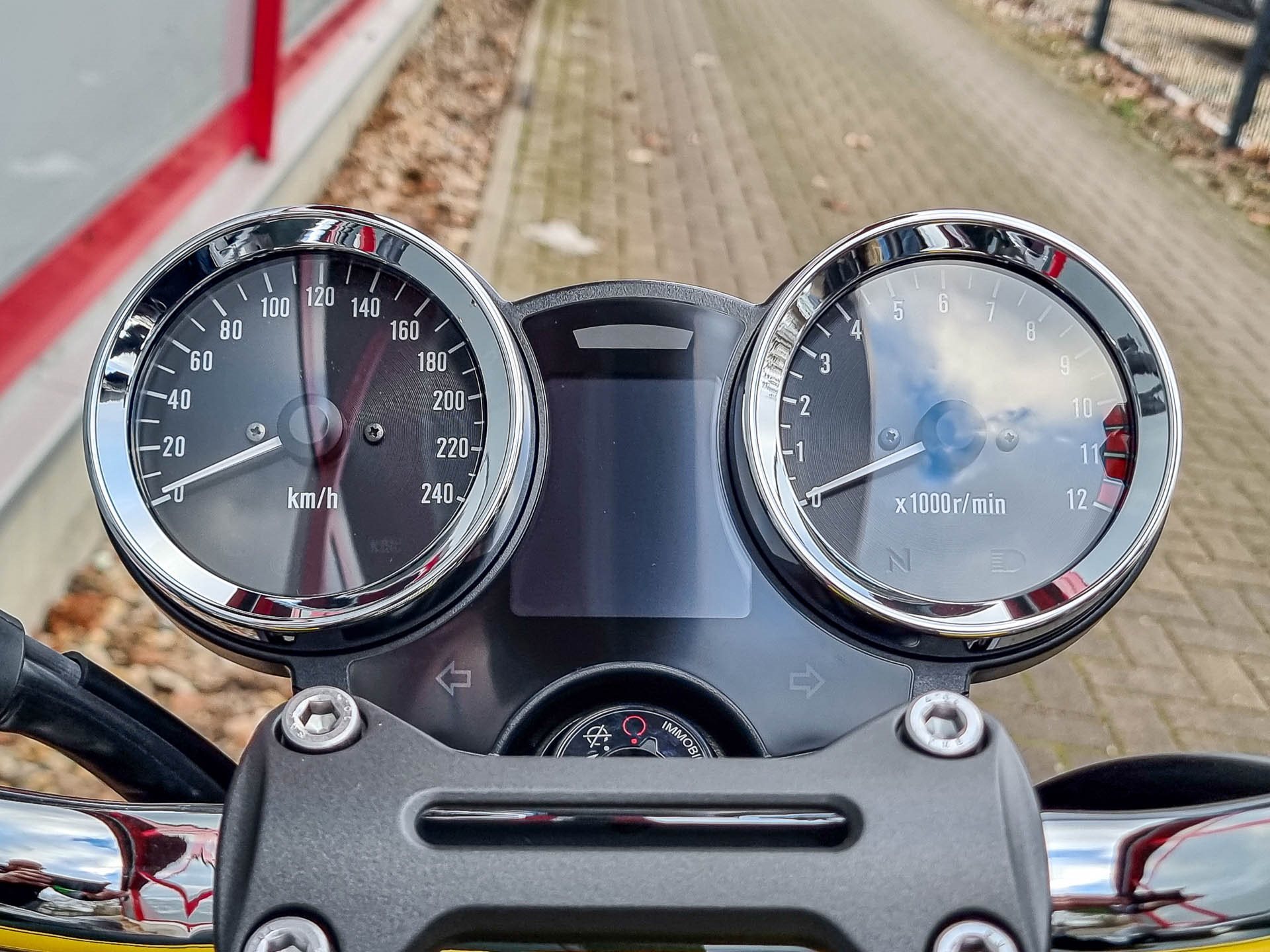 - klassische Rundinstrumente mit LCD Display und Smartphone Connectivität über die Rideology App