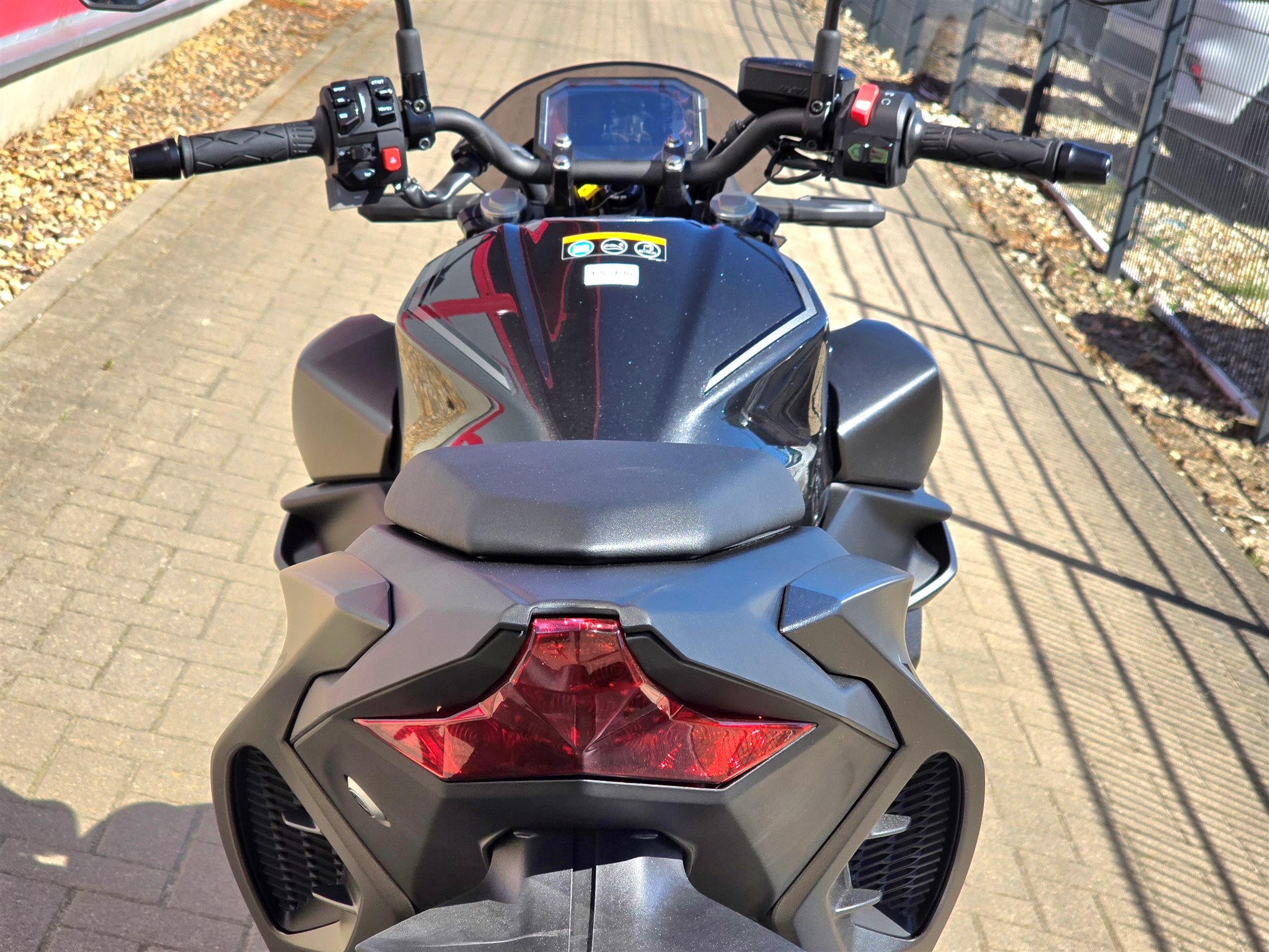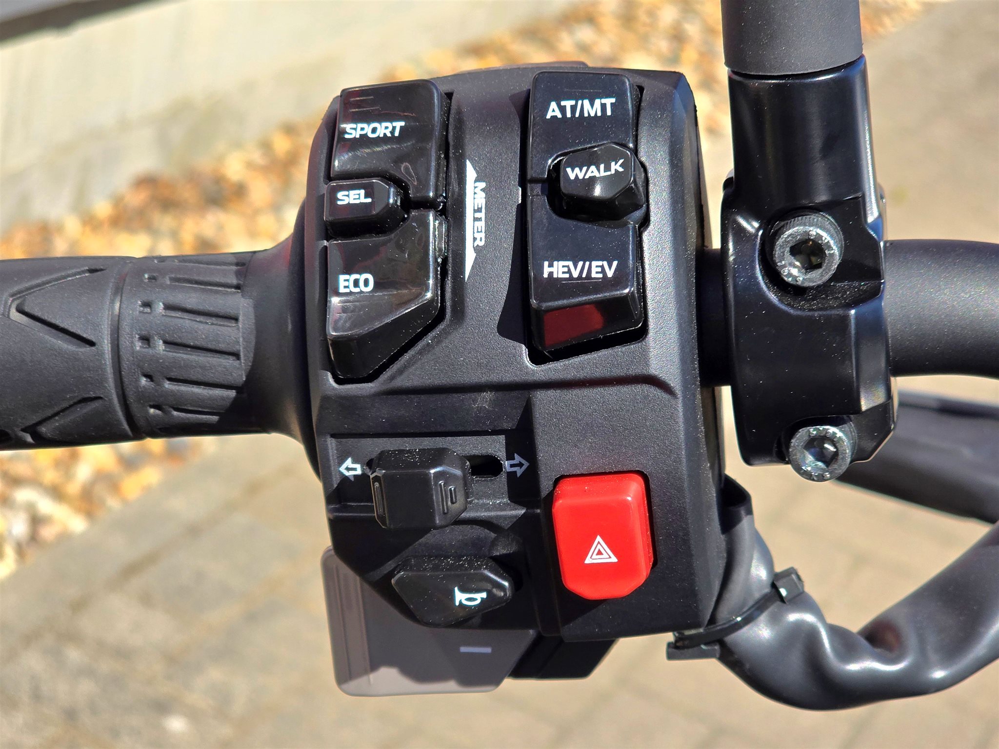 - WALK Mode (mit Rückwärtsgang): Dieser praktische Modus hilft beim Manövrieren auf einem Parkplatz. Wenn Sie den Gashebel öffnen, fährt das Motorrad mit Schrittgeschwindigkeit vorwärts. Wenn Sie den Gashebel über den "Nullpunkt" hinaus schliessen, fährt das Motorrad rückwärts.