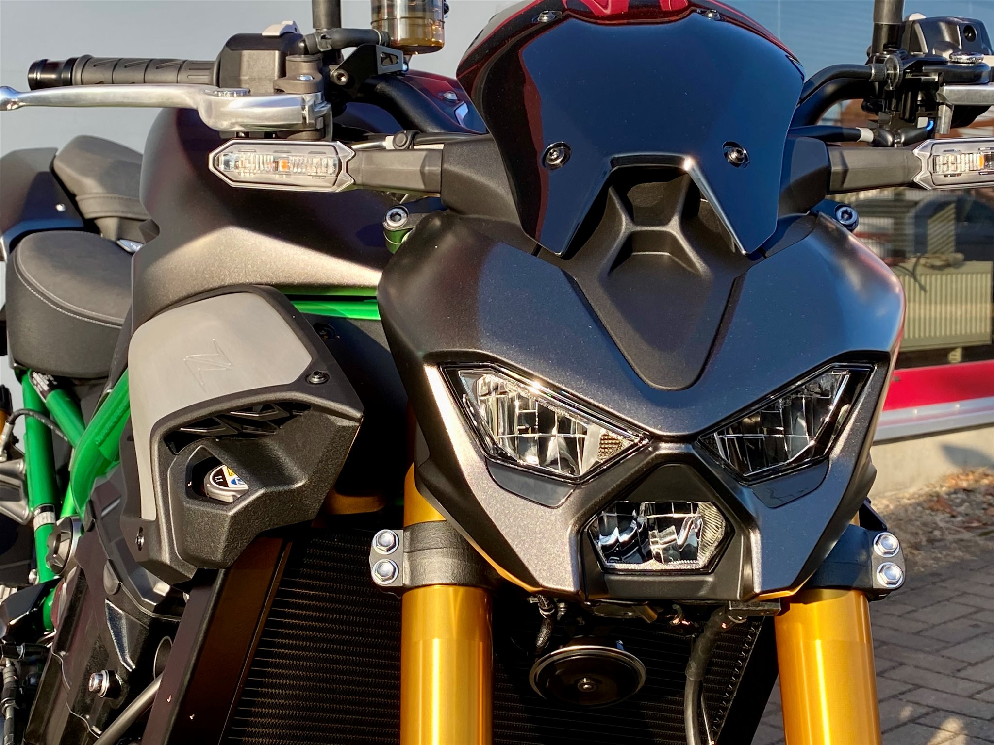 Die brandneue Z900 evolutioniert die Sugomi-Philisophie. Mit ihrem markanten, aggressiven Sugomi-Design, ihrer erstklassigen Ausstattung und der geballten Power des 948-cm-Motors setzt die Z900 ein Statement auf jeder Straße!